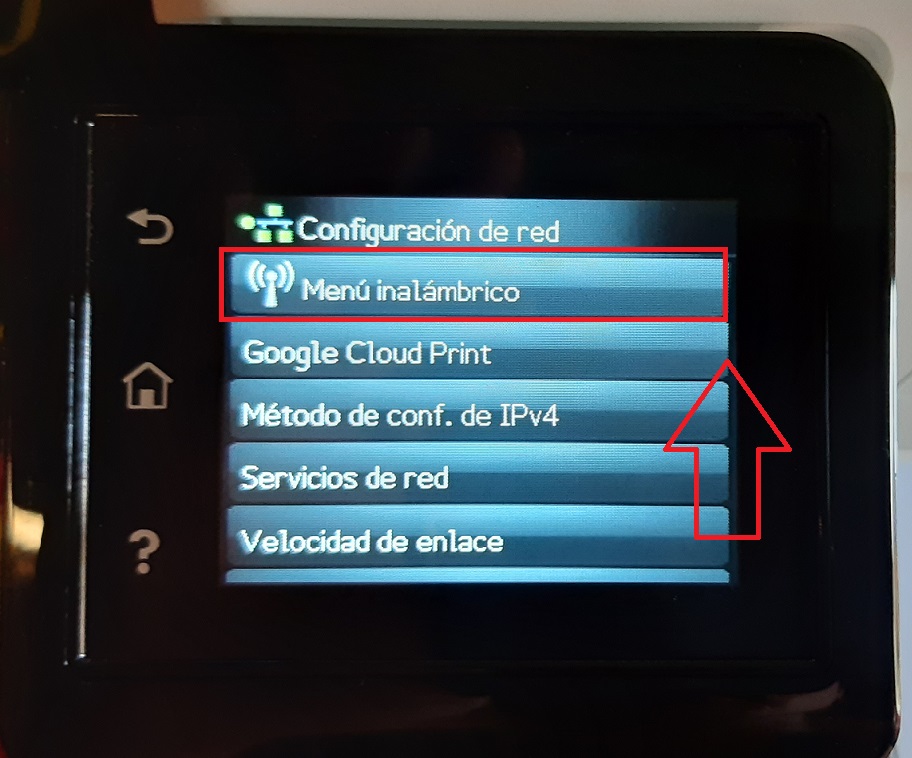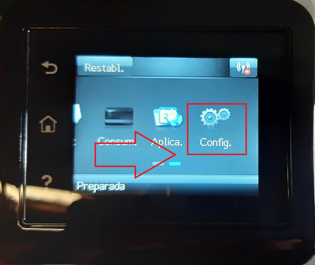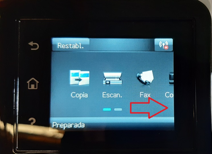 Ingresar a Menú de impresora y dirigirse hacia la derecha.