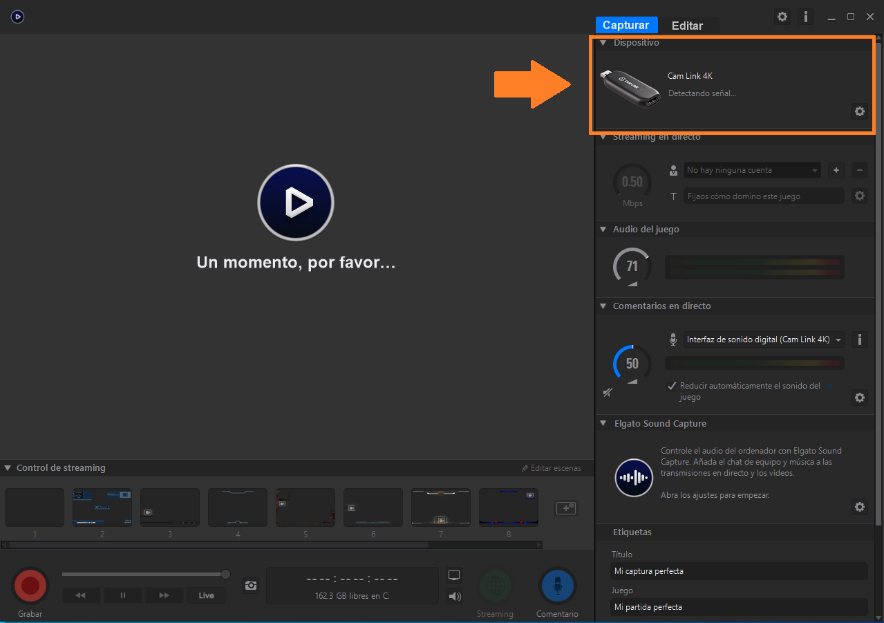 Abrimos la aplicación Game Capture y esperamos a que reconozca el dispositivo.