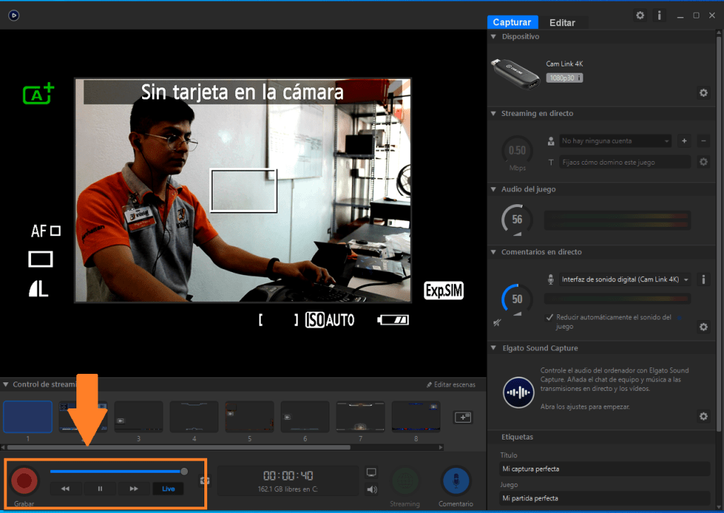 ¡Listo! Ya podremos grabar y hacer stream con nuestra cámara DSLR para una mejor calidad de video.