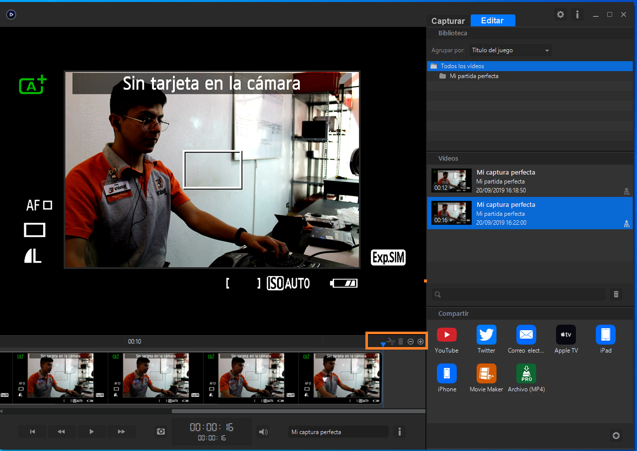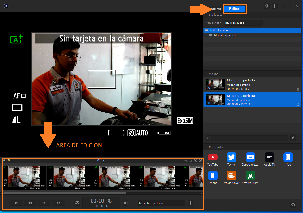 Damos clic en grabar para comenzar con la grabación del video y en la pestaña “Editar” podremos ver y recortar nuestra grabación.