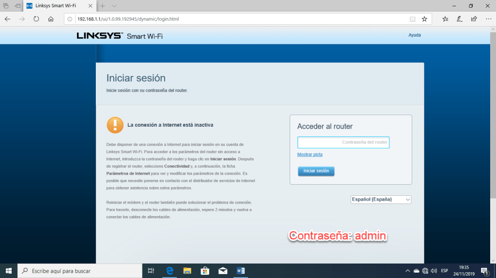 Se abrirá el portal para acceder a las configuraciones, e ingrese la contraseña (admin).