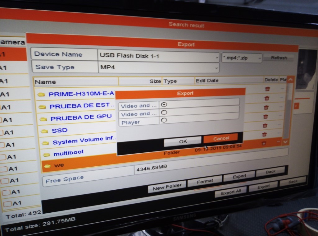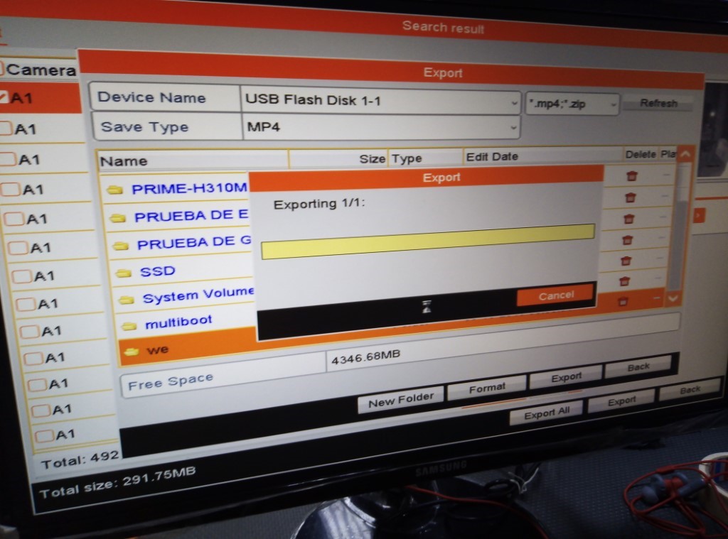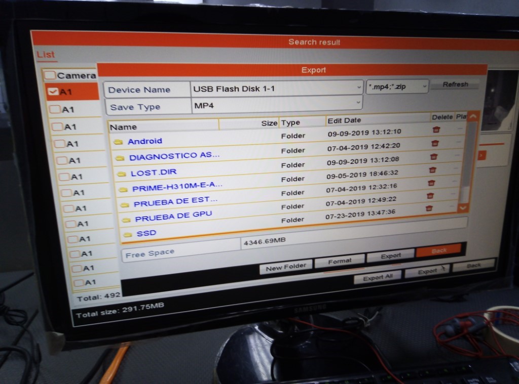 Al finalizar la exportación podremos extraer la memoria usb del DVR y conectar a nuestra pc para visualizar la información que guardamos en el.