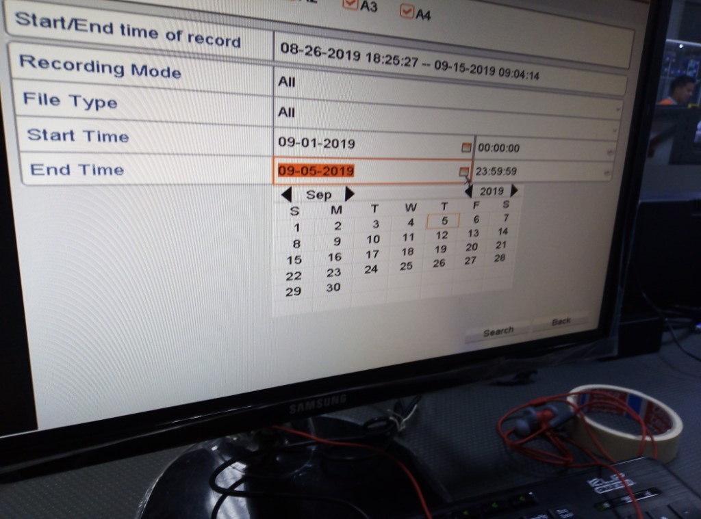 Mostrará la ventana de búsqueda donde nos mostrará las fechas del día grabados.