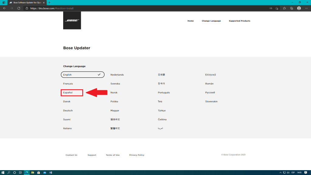 Cambiamos el idioma a uno de nuestra preferencia dando clic en la opción “Change Language”, luego seleccionamos el idioma que prefiramos, en nuestro caso será “español”.