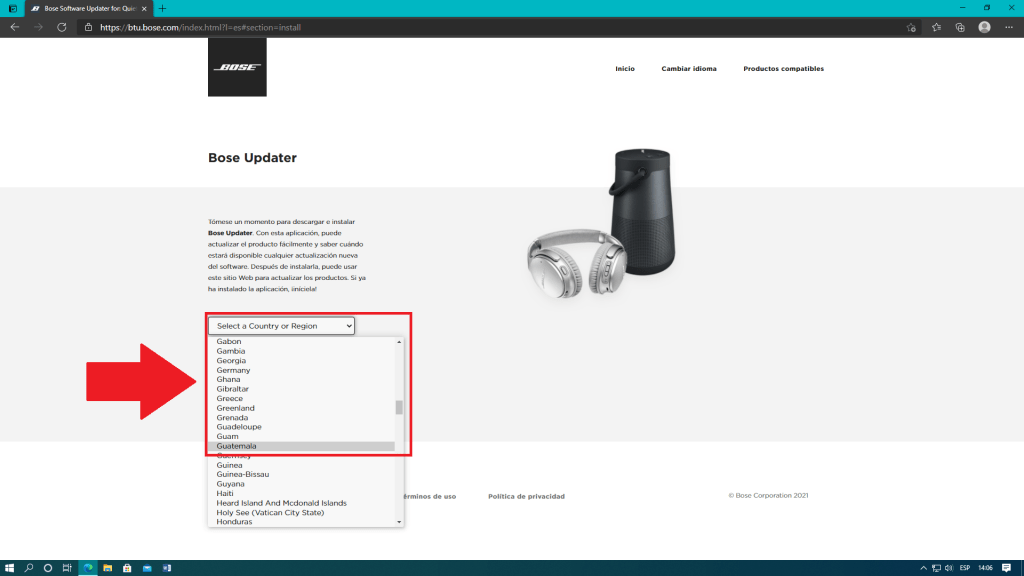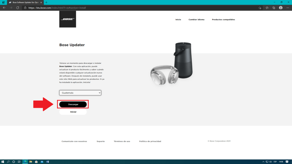 Lo primero que debemos hacer es ingresar al siguiente link: https://btu.bose.com para descargar la utilidad para actualizar el firmware.