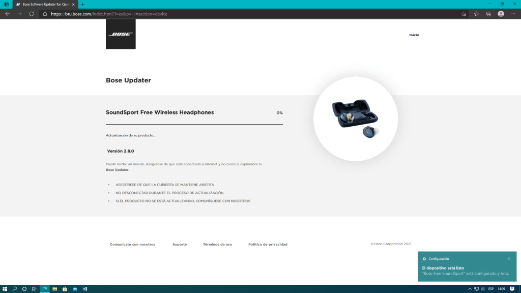 En este artículo aprenderemos como actualizar el firmware de nuestros audífonos BOSE desde una computadora mediante utilidad «BoseUpdaterInstaller», en los casos que no podamos realizarlo mediante la aplicación BOSE Connect, en esta ocasión utilizaremos el modelo SoundSport Free Wireless.
