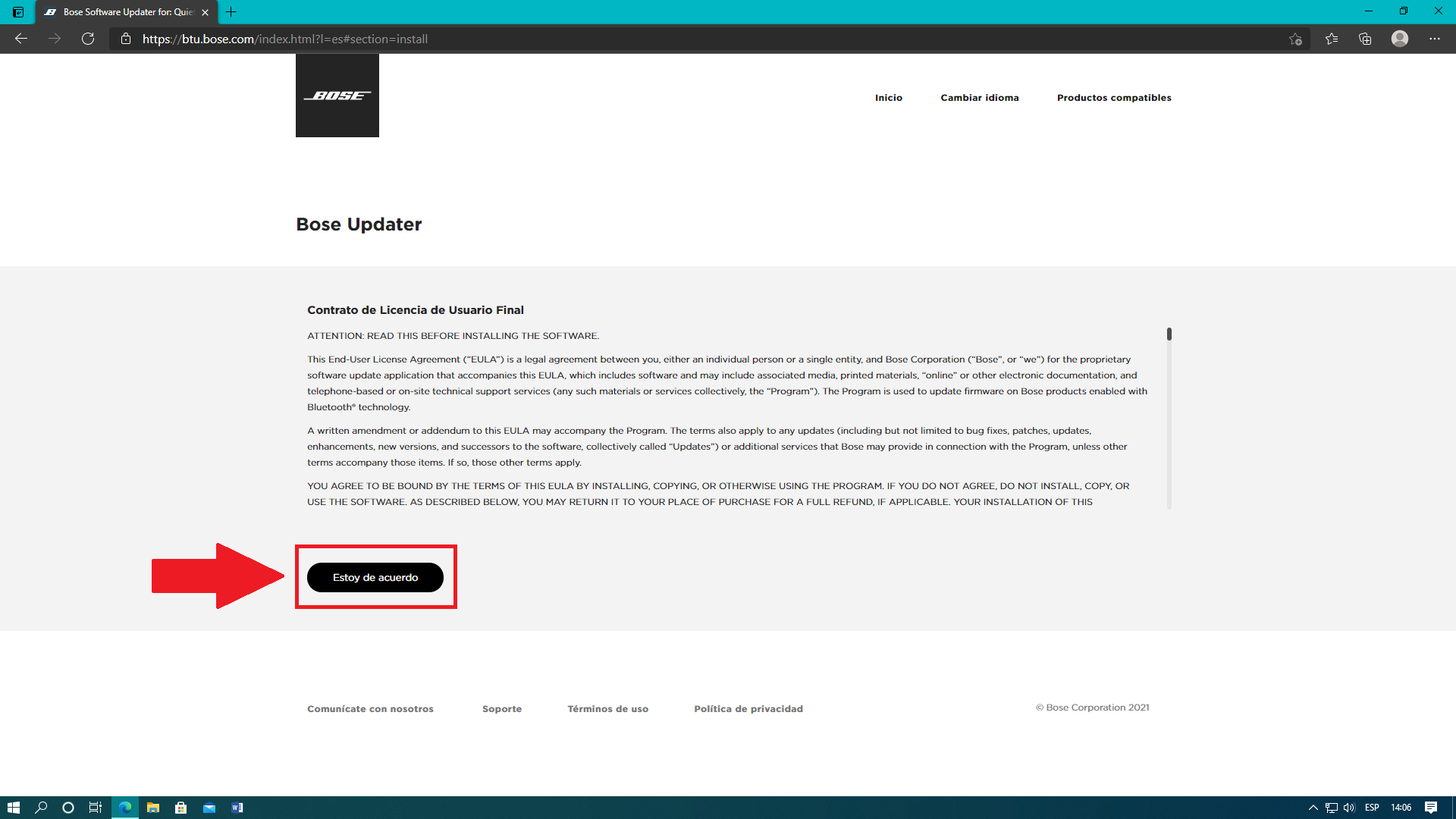 Lo primero que debemos hacer es ingresar al siguiente link: https://btu.bose.com para descargar la utilidad para actualizar el firmware.