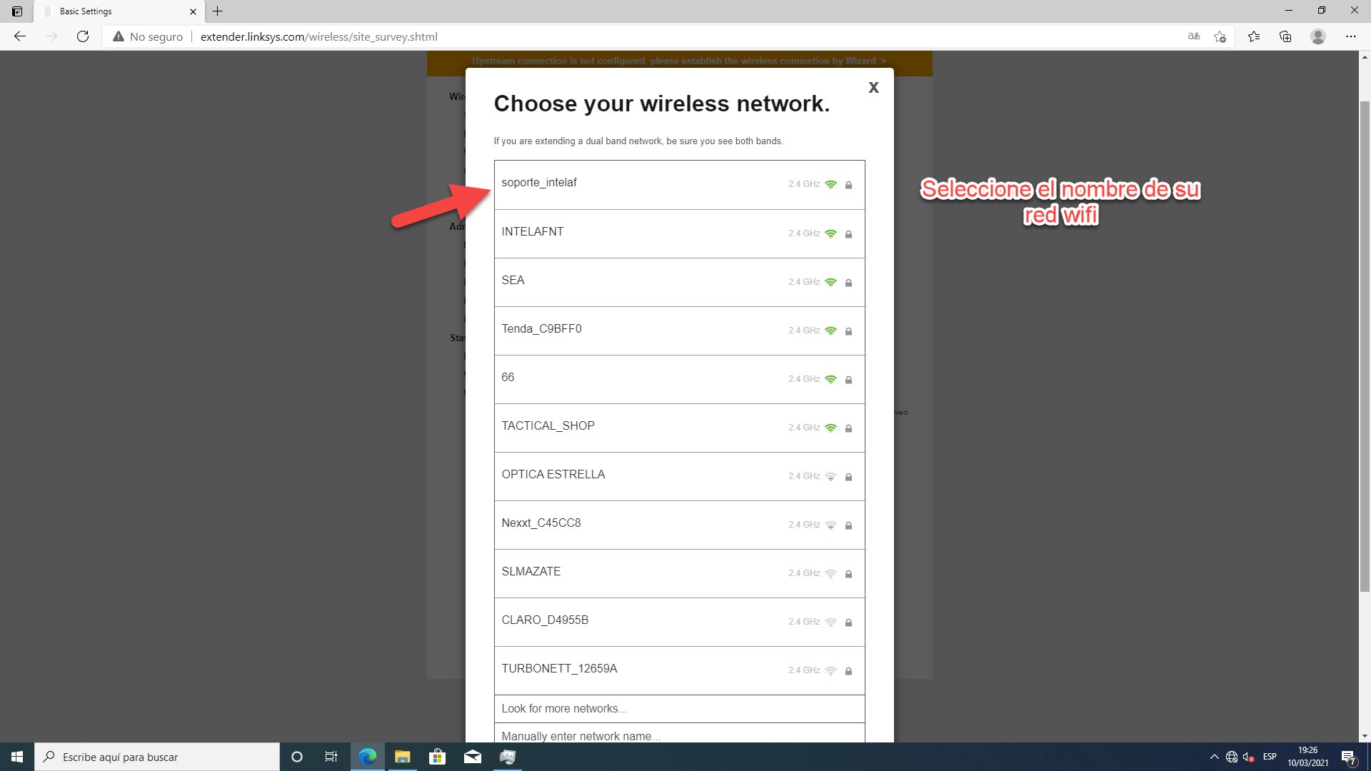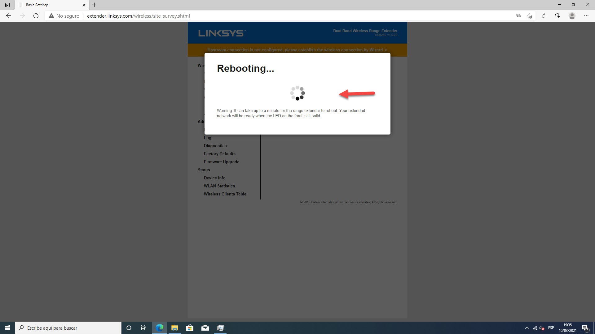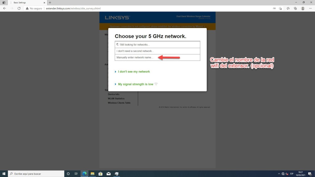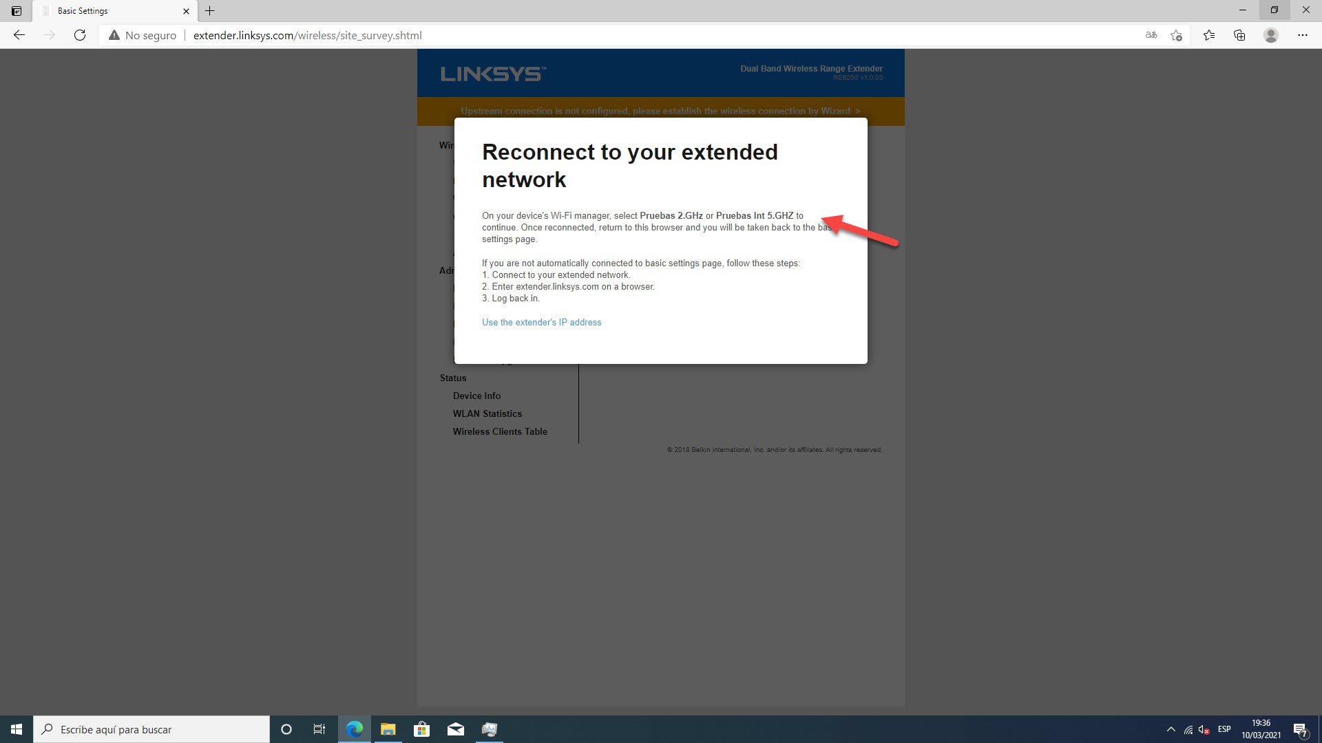 Automáticamente se conectará a la red WiFi de nuestro Extensor Linksys RE6250 y podremos confirmar el funcionamiento visitando una página web.