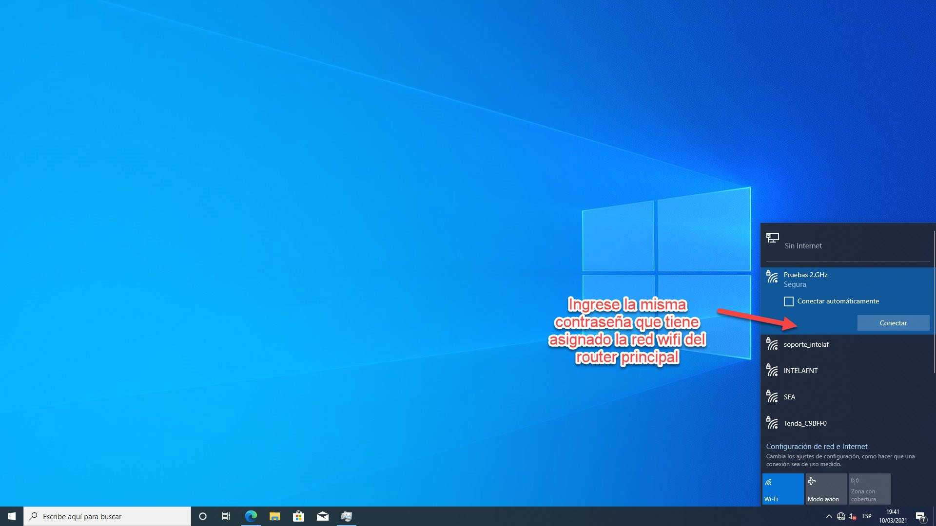 Por último, conectamos nuestro equipo a la nueva red wifi que creamos anteriormente e ingresamos la contraseña configurada.