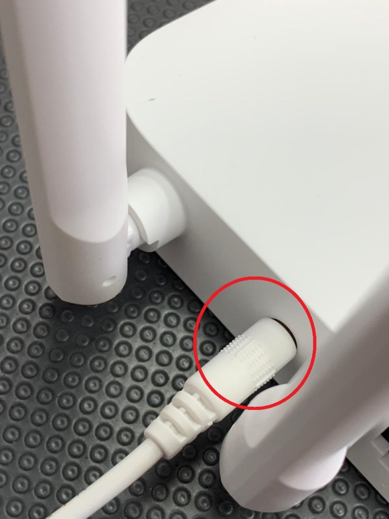 Conectamos nuestro Router Xiaomi 4C a un tomacorriente eléctrico utilizando el transformador incluido.