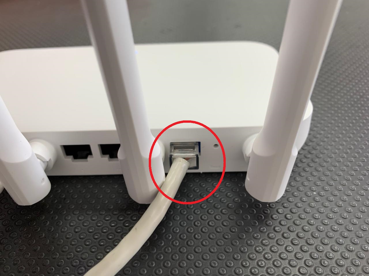 Conectamos un extremo de nuestro cable de red al Router Xiaomi 4C y el otro extremo al router principal.