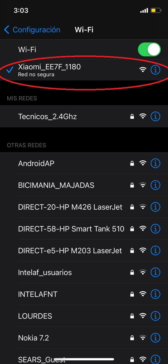 En nuestro dispositivo móvil ingresamos a las configuraciones Wi-Fi y nos conectamos la red con el nombre “Xiaomi_EE7F_1180”, la cual está sin contraseña.
