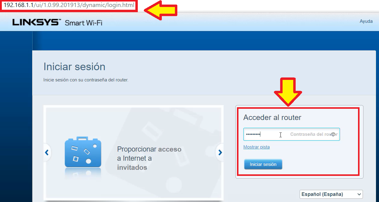 En nuestra PC o notebook ingresamos a un navegador y en la barra de búsqueda colocamos la siguiente dirección “linksyssmartwifi.com o 192.168.1.1” para acceder a la configuración. Ingresamos la contraseña de administrador que hayamos configurado y damos clic en “Iniciar Sesión«.