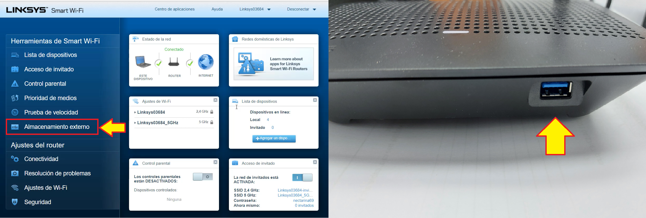 Nota: Necesitamos tener nuestra unidad de almacenamiento conectado al router.