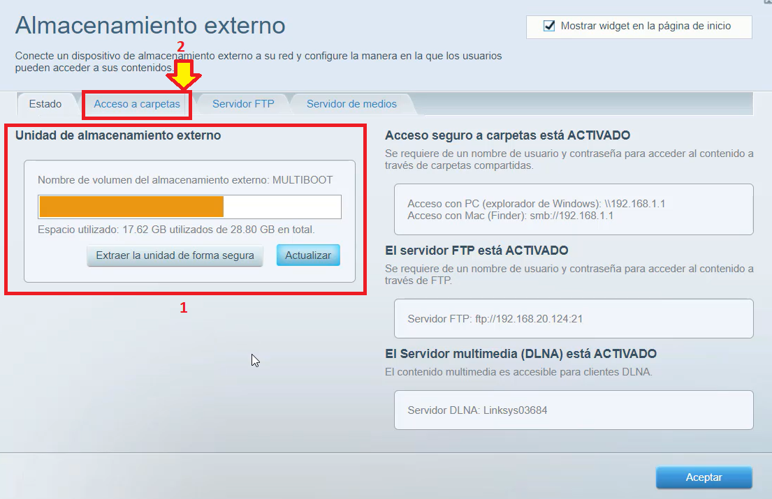 Configurar acceso a carpeta compartida en router Linksys EA6350