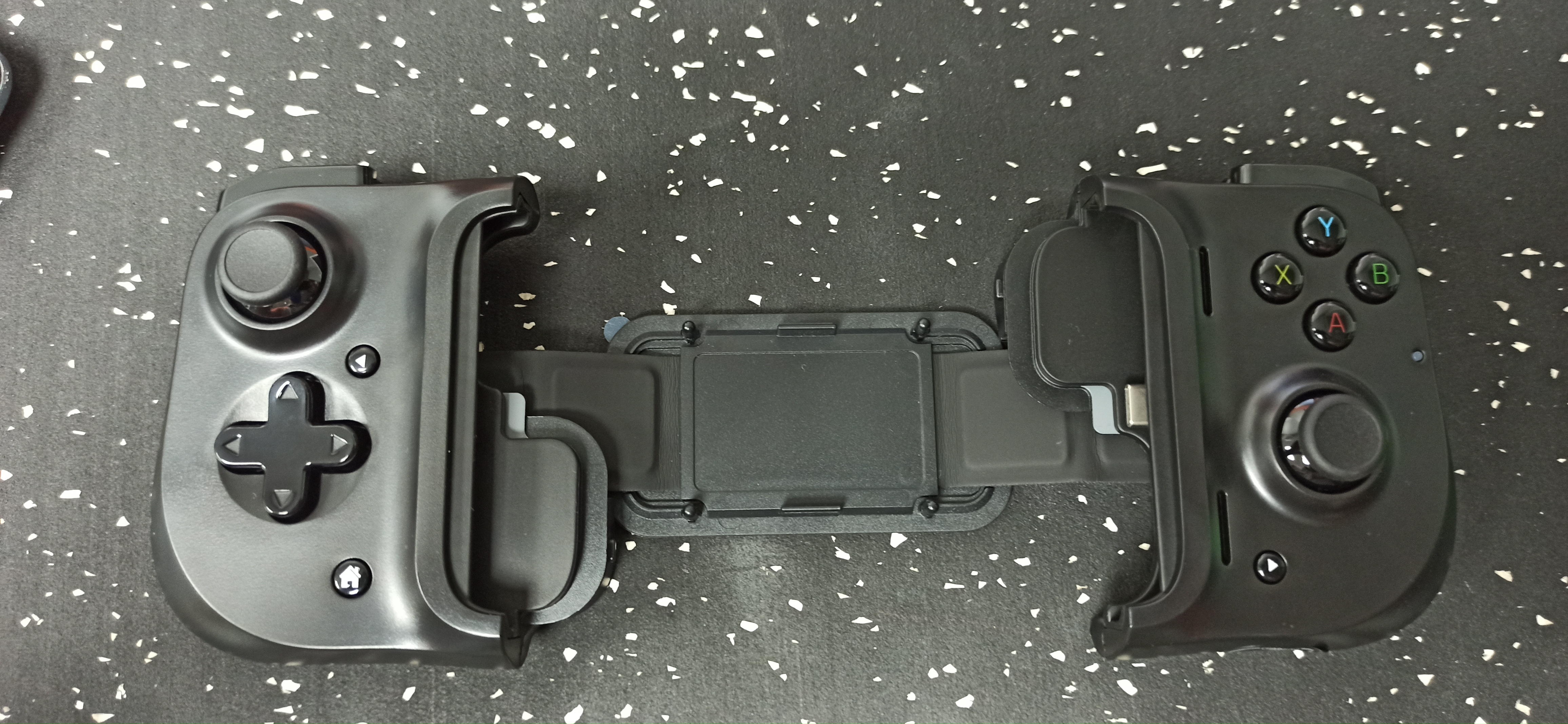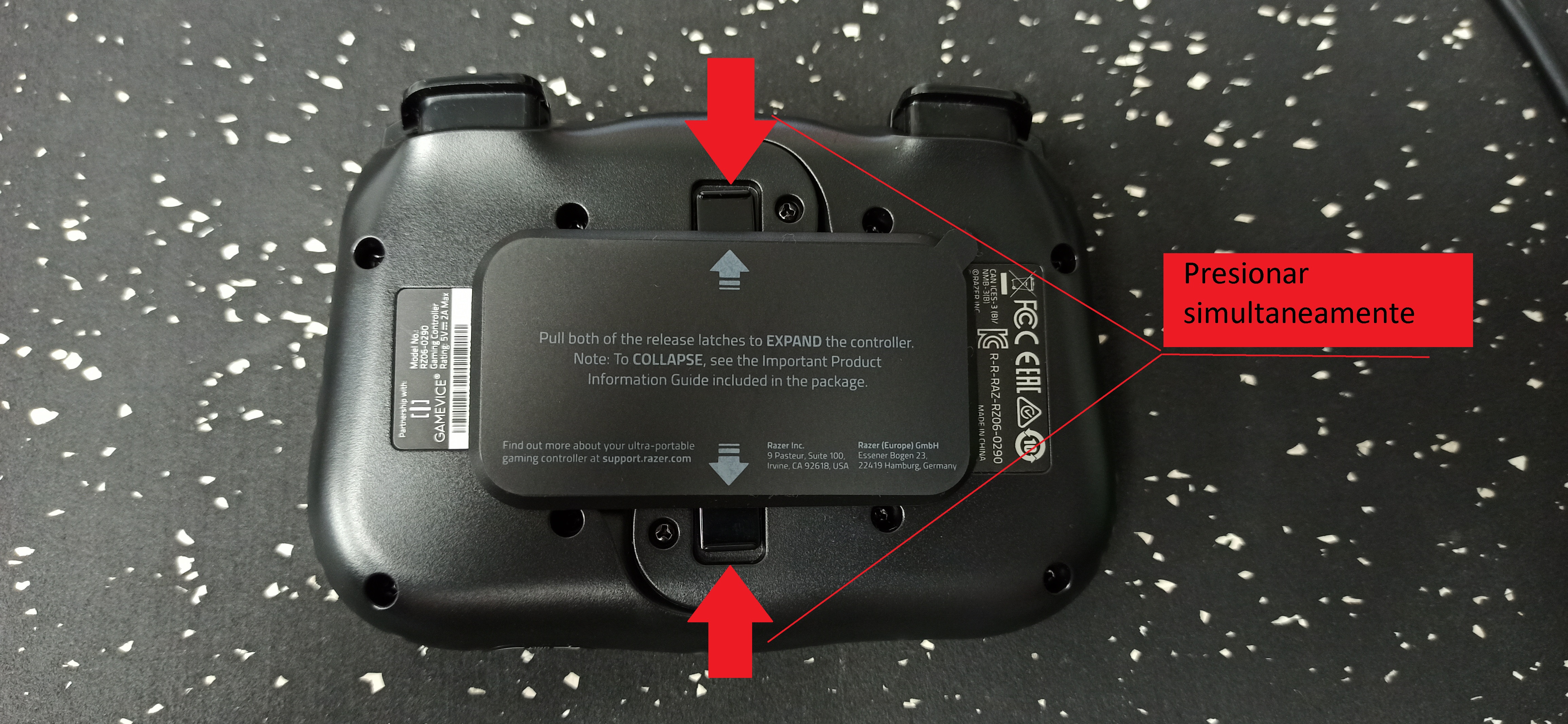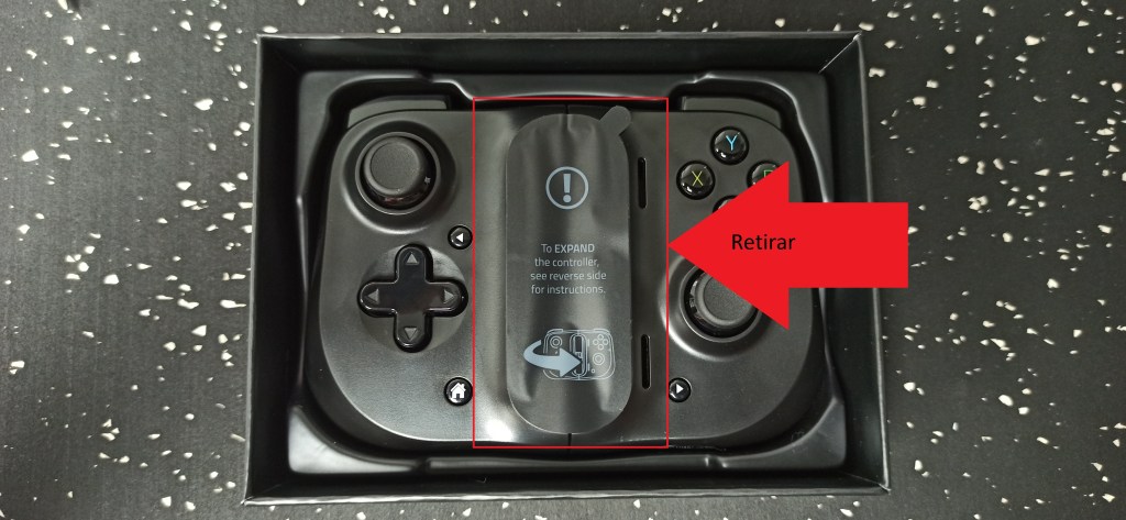 Para poder expandir nuestro gamepad, presionamos simultáneamente los dos gatillos de la parte trasera, lo cual liberara el seguro y así poder colocar nuestro teléfono móvil.