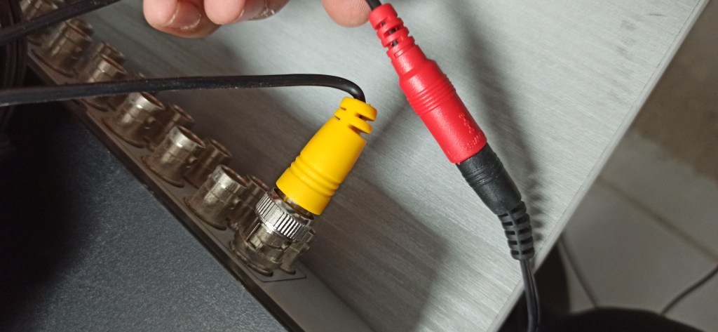 Ahora vamos a conectar nuestra cámara a nuestro DVR por medio de un Video Balun o un cable BNC, en nuestro caso será un cable BNC, por lo que conectamos una punta a la cámara y la otra a nuestro DVR.