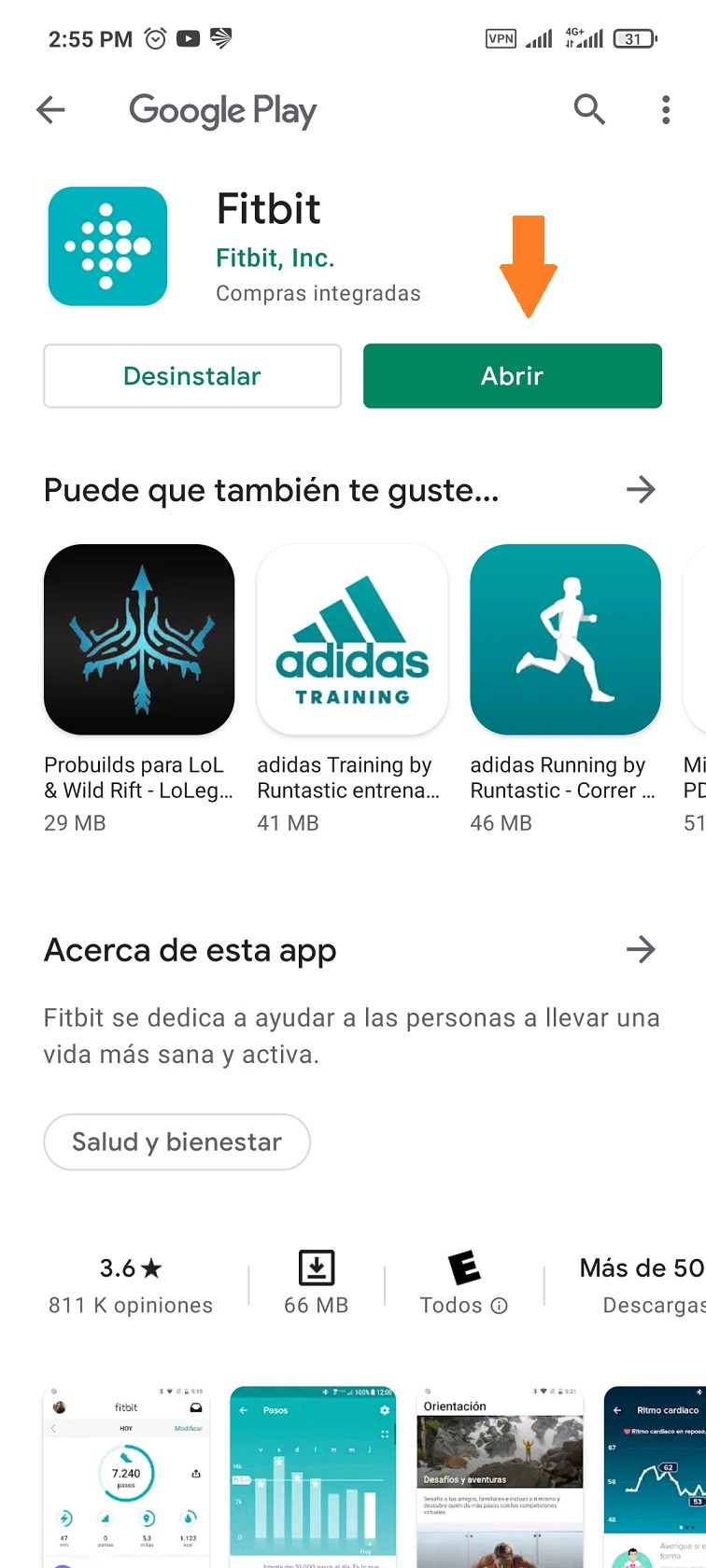 En nuestro dispositivo móvil nos dirigimos a la Play Store , buscamos y descargamos la aplicación “Fitbit”, al finalizar la abrimos.
