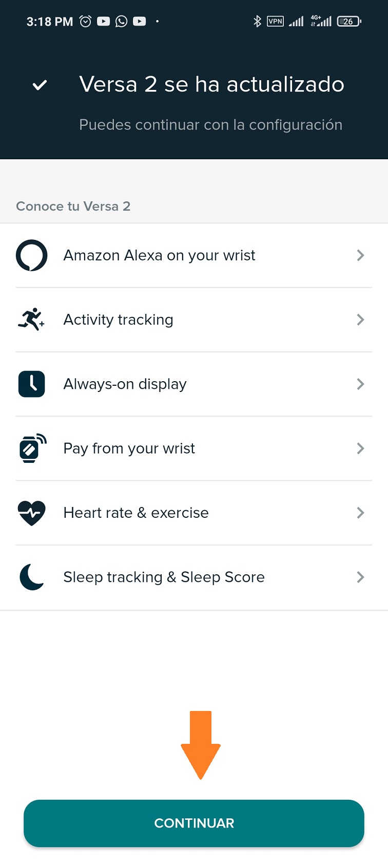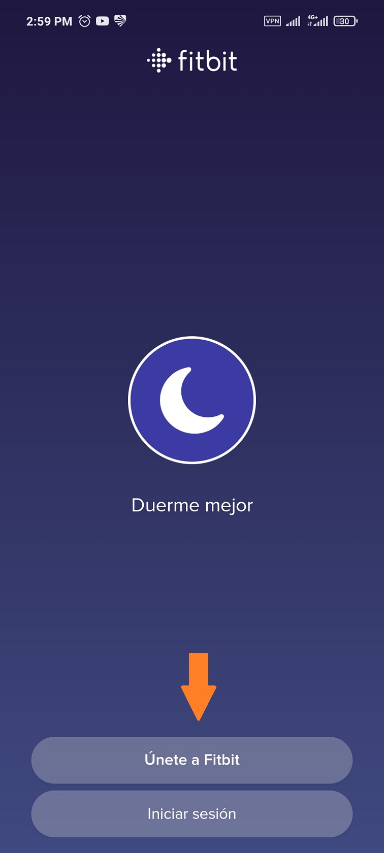 En la aplicación Fitbit seleccionamos “Configurar”, confirmamos los permisos que se requieran y aceptamos la política de privacidad.