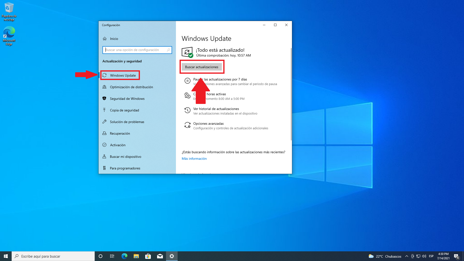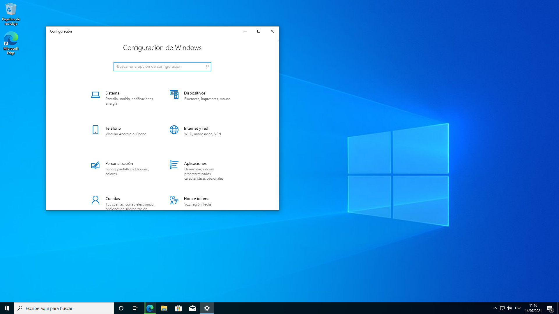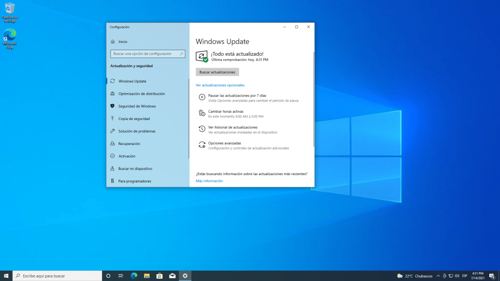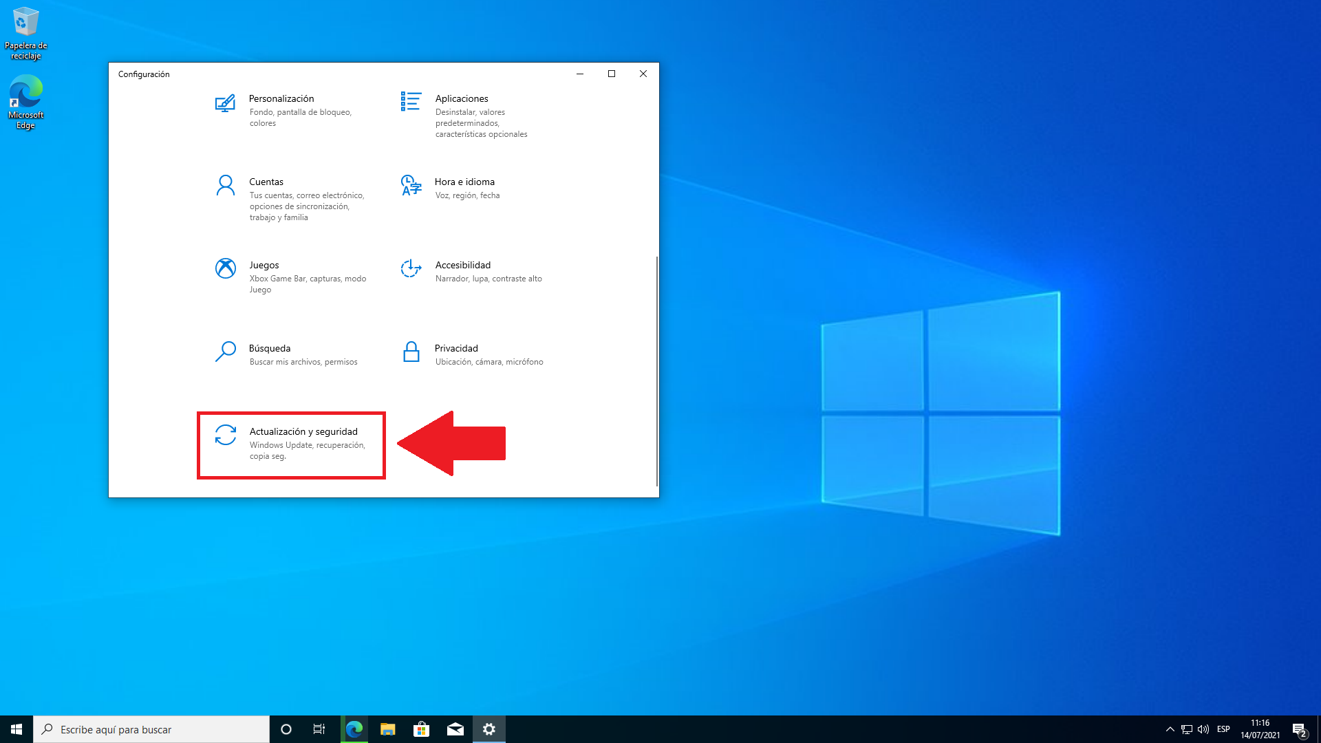 Dentro de la ventana de configuraciones vamos a seleccionar la opción “Actualización y seguridad”.
