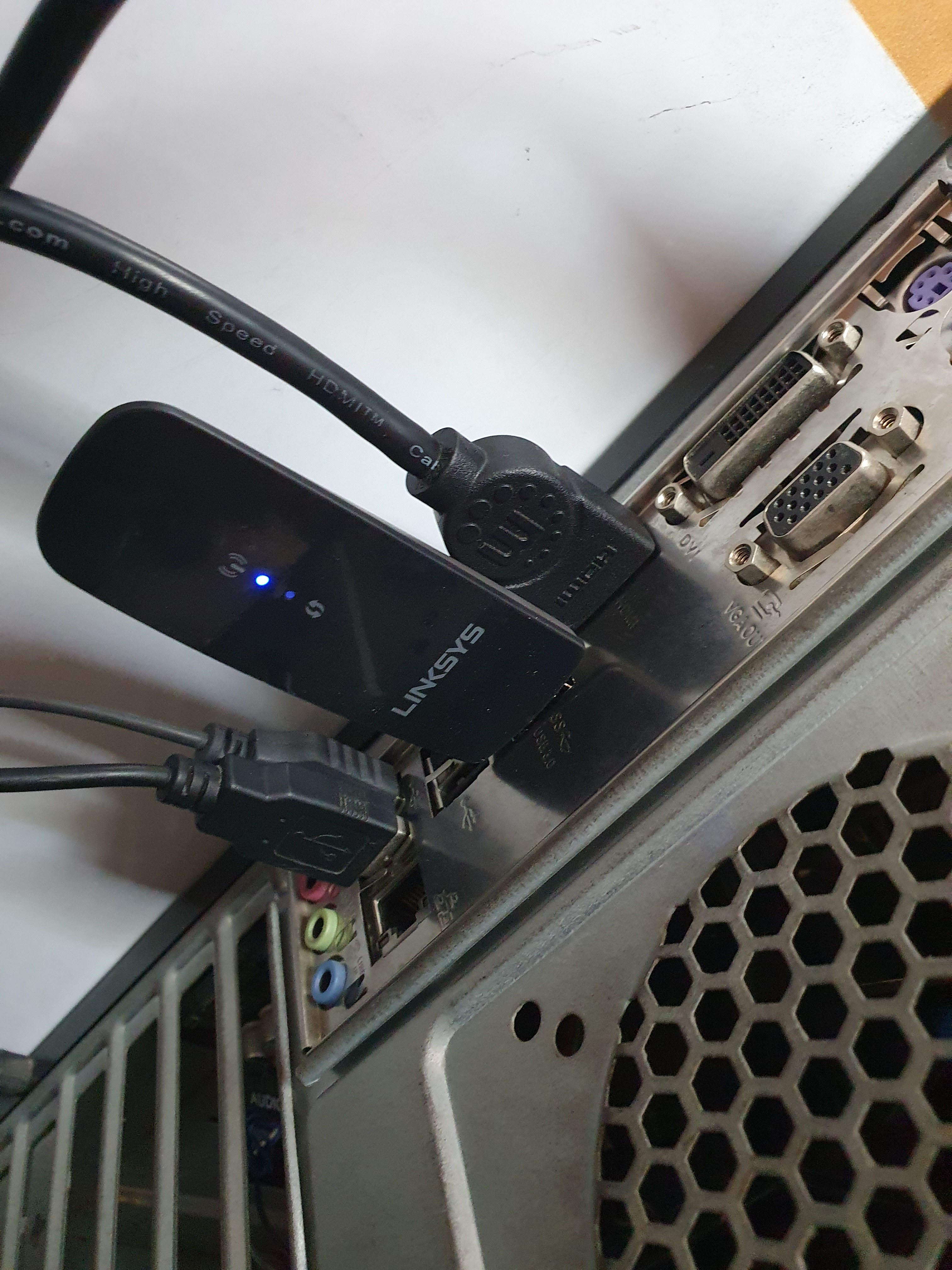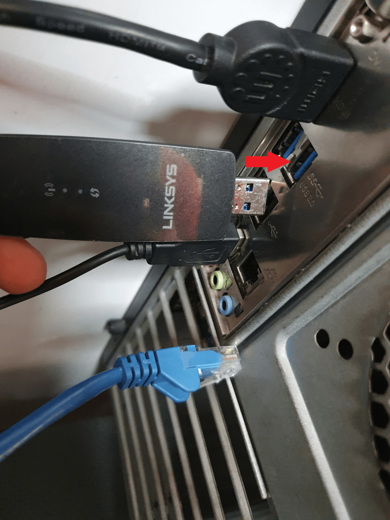 Conectamos el adaptador WiFi Linksys WUSB6300 AC 1200 a un puerto USB de nuestra PC.