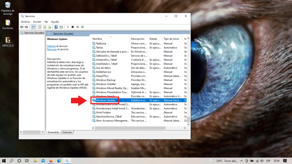 Veremos todos los servicios que se están ejecutando en nuestro equipo, buscamos el servicio con nombre «Windows Update«.