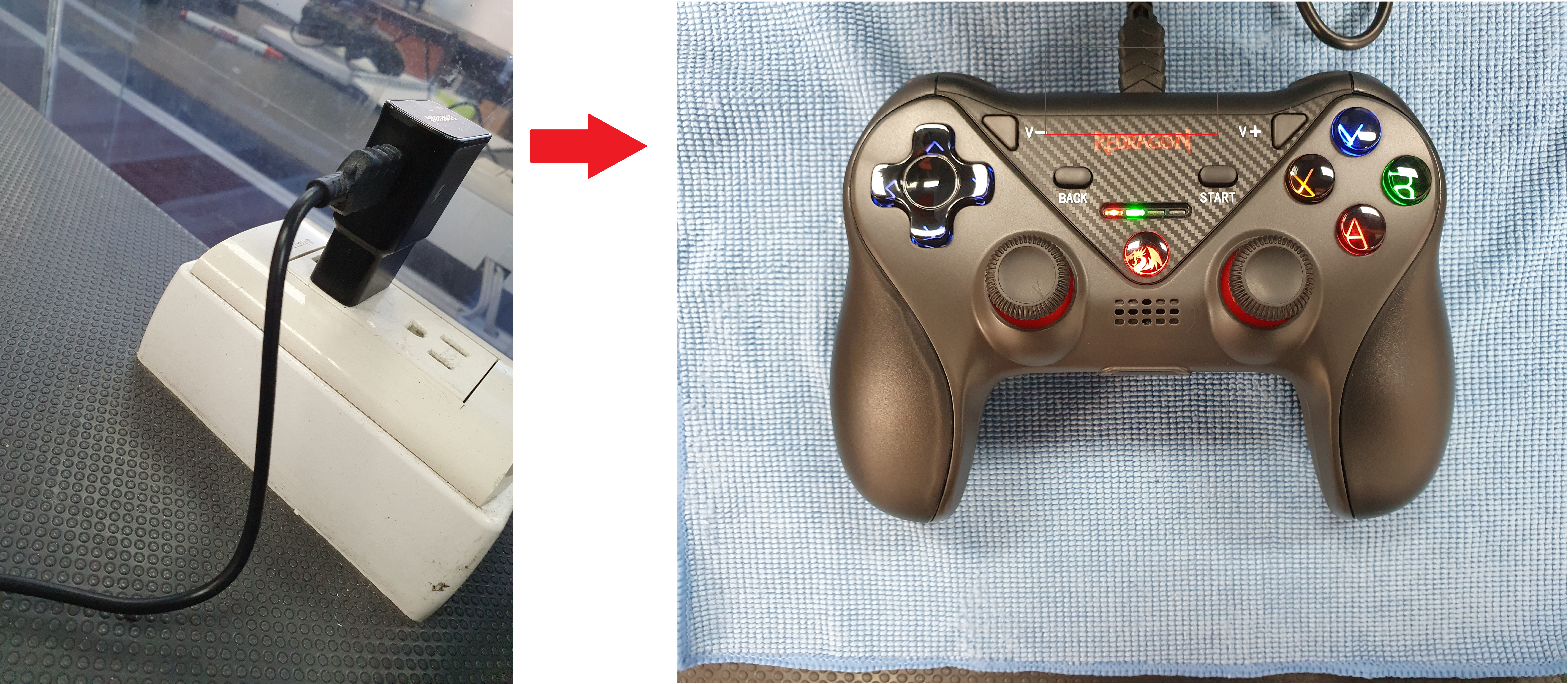 Como primer paso debemos de cargar nuestro Gamepad Redragon Ceres G812 para que nos permita hacer la vinculación correcta y sin interrupciones, para ello lo conectamos a un cargador con conexión USB 5V 1A o a un puerto USB de nuestra PC o notebook.
