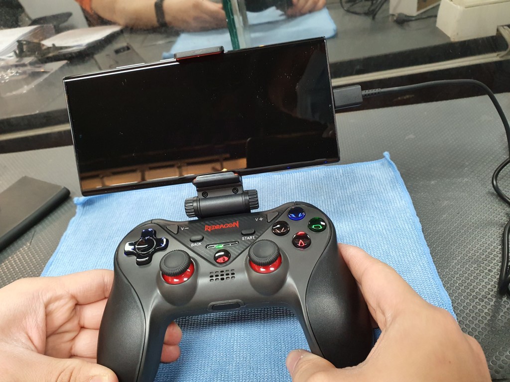 Colocamos nuestro dispositivo móvil en nuestro Gamepad Redragon Ceres G812 y con esto ya está listo para su uso.