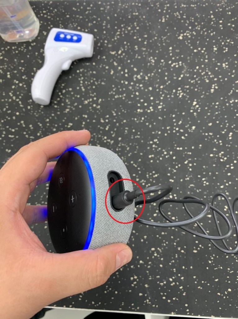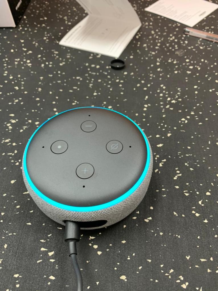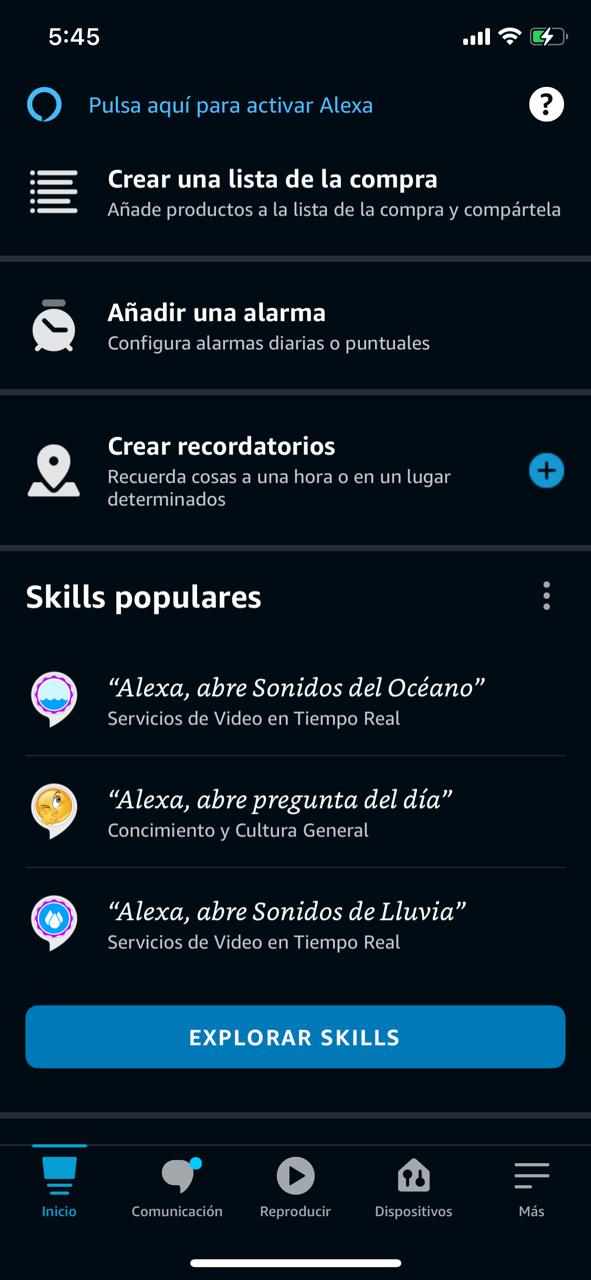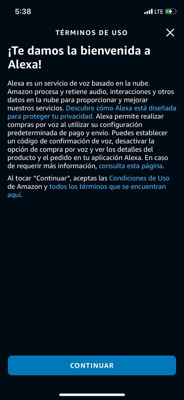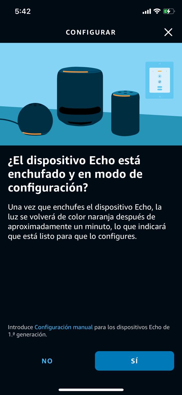 Conectamos nuestra bocina a un tomacorriente, emitirá una luz de color azul y nos solicitará que descarguemos la aplicación de «Alexa».