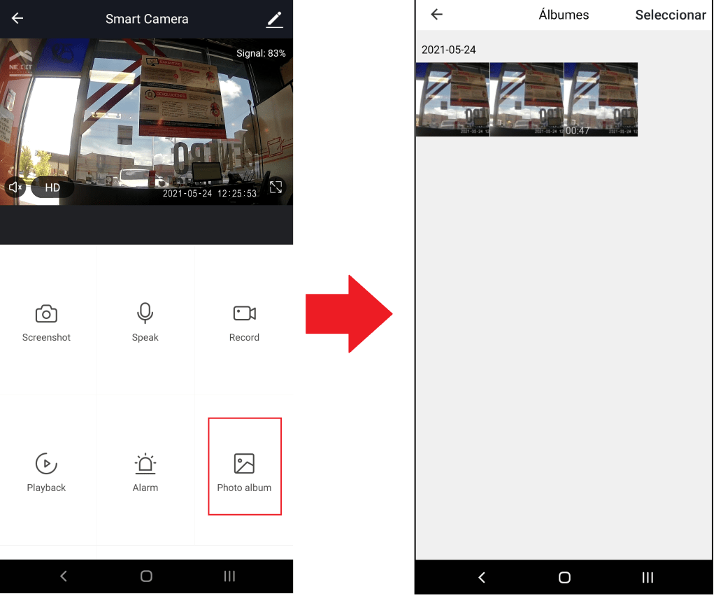 - Para verificar los videos e imágenes guardados en la memoria micro SD seleccionamos «Photo álbum«.