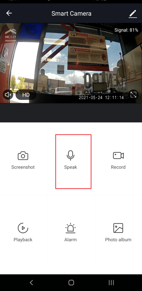 - Para hablar por medio de nuestra cámara seleccionamos «Speak«.