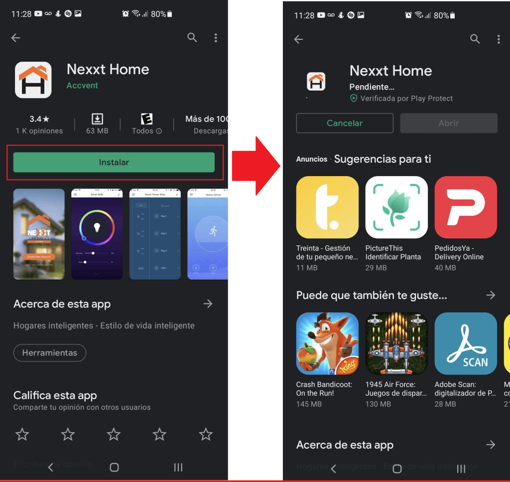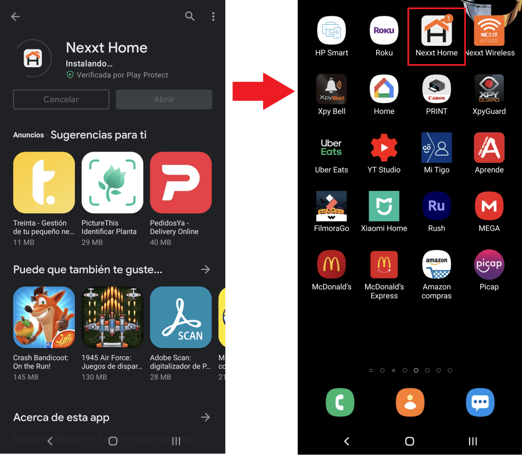Ingresamos a la tienda de aplicaciones Play Store o App Store, buscamos la aplicación «Nexxt Home«, la descargamos e instalamos.