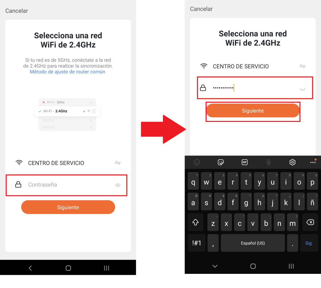 La aplicación nos solicitara que ingresamos la contraseña de la red WiFi a la que estemos conectados, lo realizamos y seleccionamos «Siguiente«.