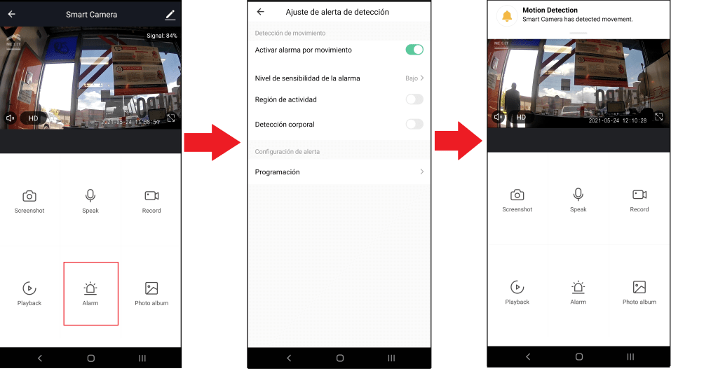Seleccionando opción «Alarm» podremos configurar los ajustes de detección de movimiento.