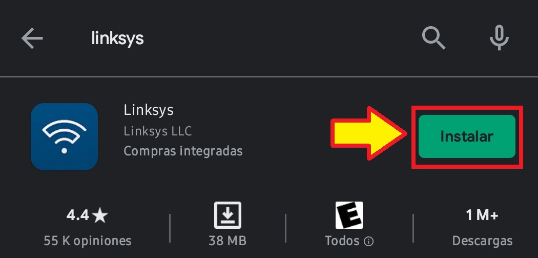 Una vez conectado a la red WiFi generada por nuestro router tendremos acceso a internet, nos dirigimos a la tienda de aplicaciones y descargamos la aplicación de “Linksys”.