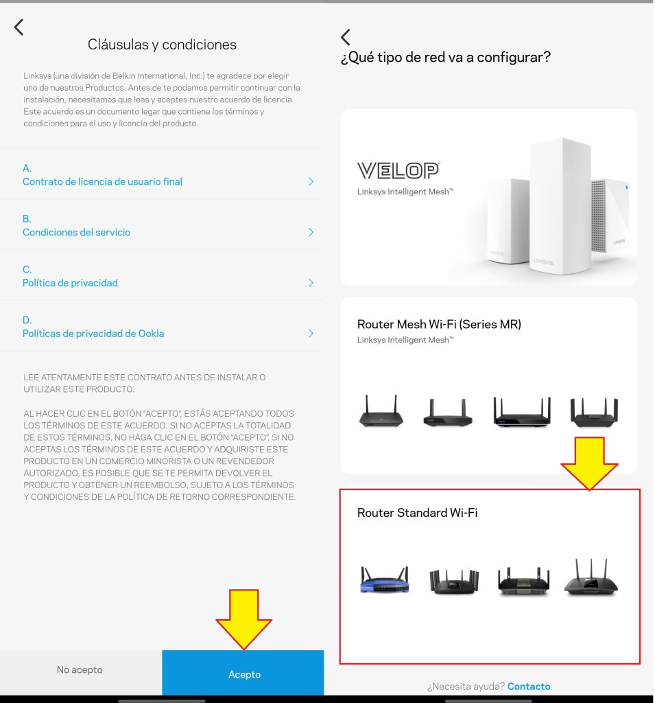 Aceptamos las políticas de uso de aplicación y luego seleccionamos la opción de “Router Estándar Wi-Fi”.