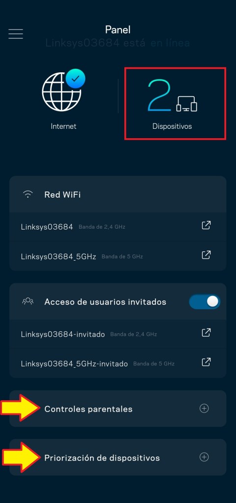 Abrimos nuevamente la aplicación de Linksys, en la cual podremos administrar nuestra red como por ejemplo: ver cuantos usuarios hay conectados, priorizar un dispositivo en cuanto a velocidad e incluso aplicar controles parentales.