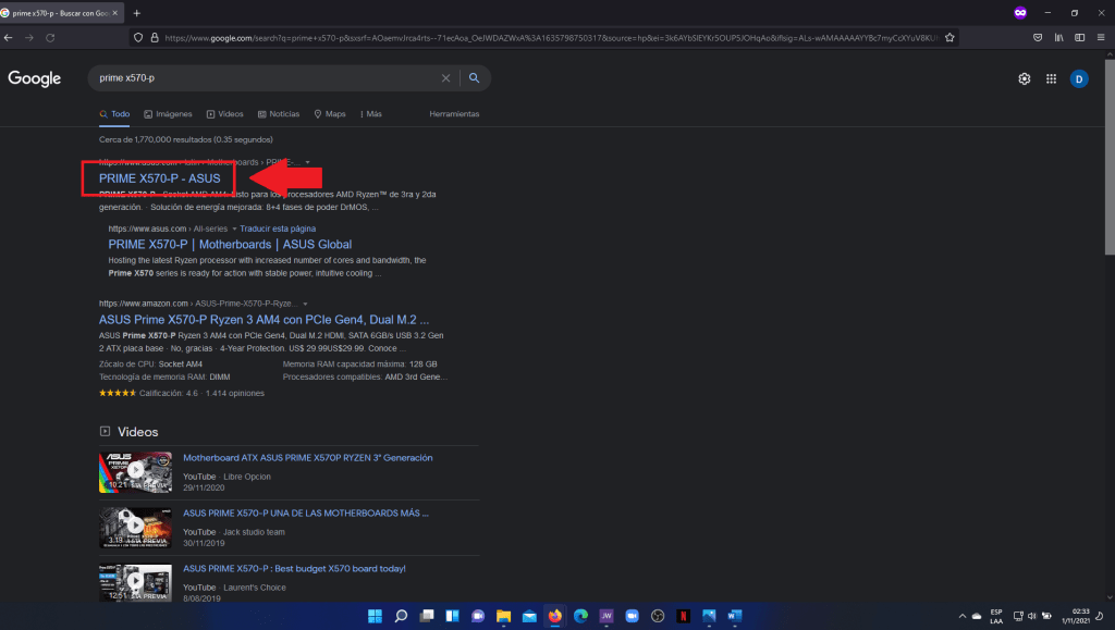 - Buscaremos el modelo de nuestra tarjeta madre.