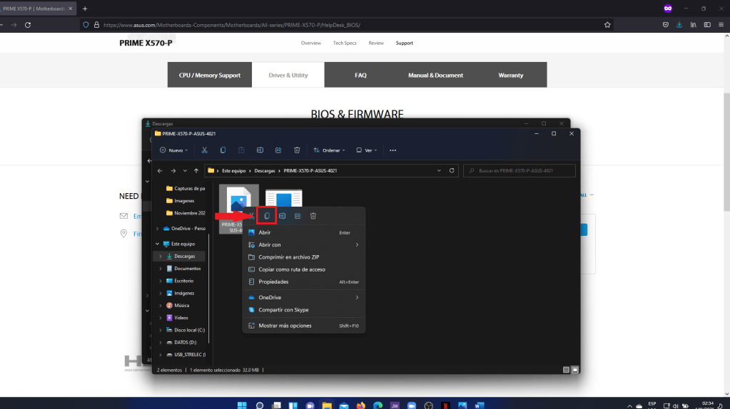 - Luego copiaremos este archivo y lo pegaremos en una memoria USB.