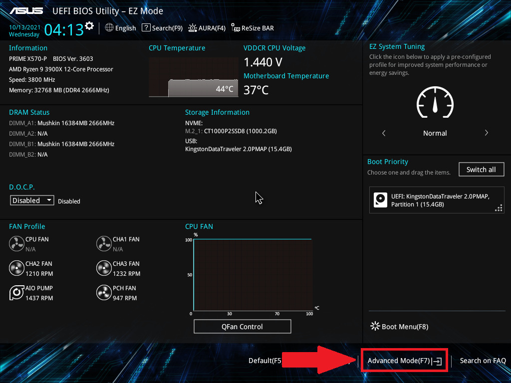 - Presionaremos F7 o daremos clic en la opción “Advanced Mode”