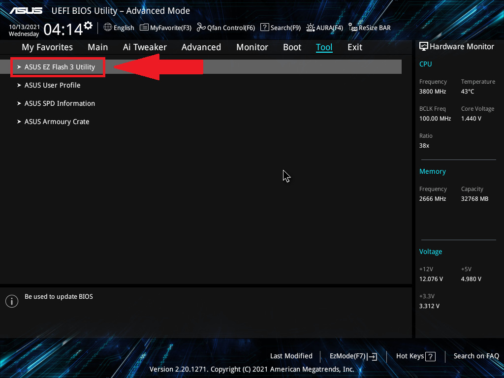 - Seleccionaremos la opción “Asus EZ Flash 3 Utility”