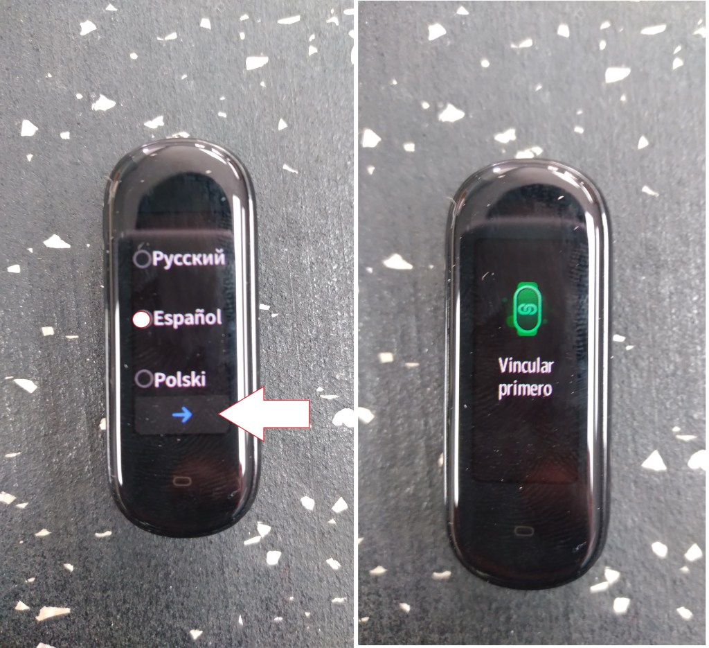 Ya encendido nuestro reloj Xiaomi Amazfit Banda 5 Seleccionaremos el idioma que deseemos, posterior seleccionamos el menú siguiente y nos solicitará que vinculemos nuestro reloj Xiaomi Amazfit Banda 5 a la aplicación.