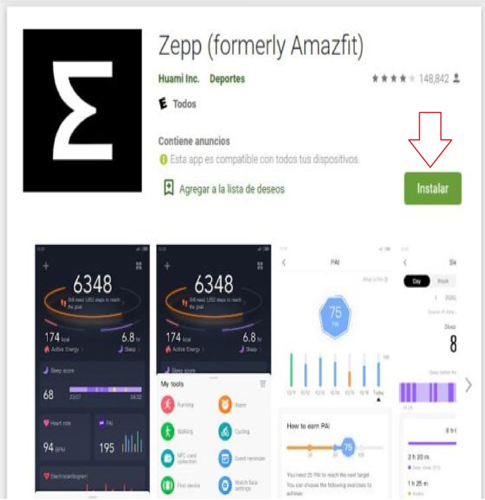 En nuestro dispositivo ingresamos a nuestra tienda de aplicaciones Play Store y descargamos la aplicación «Zepp» la cual nos permitirá vincular nuestro reloj Xiaomi Amazfit Banda 5.