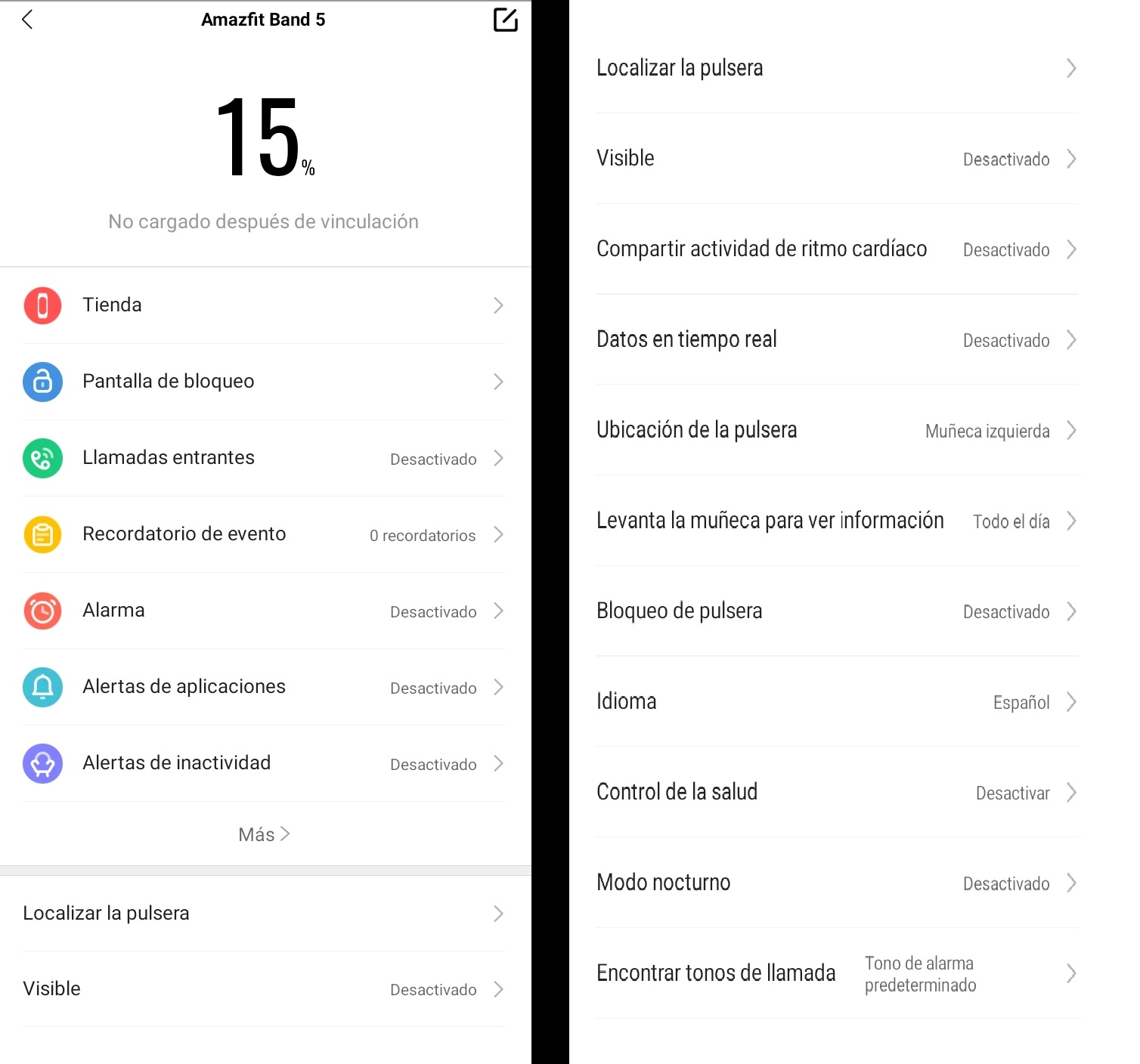 Ya vinculado nuestro reloj Xiaomi Amazfit Banda 5, en la aplicación «Zepp» nos desplegara una lista de configuración las cuales podremos modificar a nuestra mejor opción.