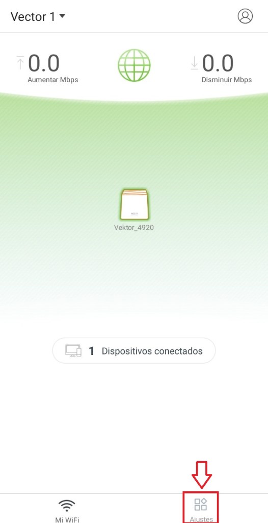 Ingresamos a la aplicación Nexxt Wireless y en el menú inicial nos mostrara nuestro Vektor el cual ya se encuentra configurado y seleccionamos la opción «Ajustes«.