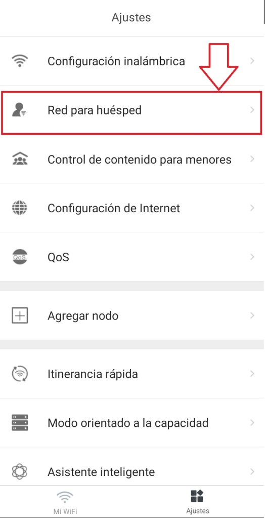 La opción ajustes nos desplegara una serie de configuraciones las cuales podemos realizar en nuestro Vektor 2400-AC una de ellas «Red para huésped» la cual seleccionaremos.