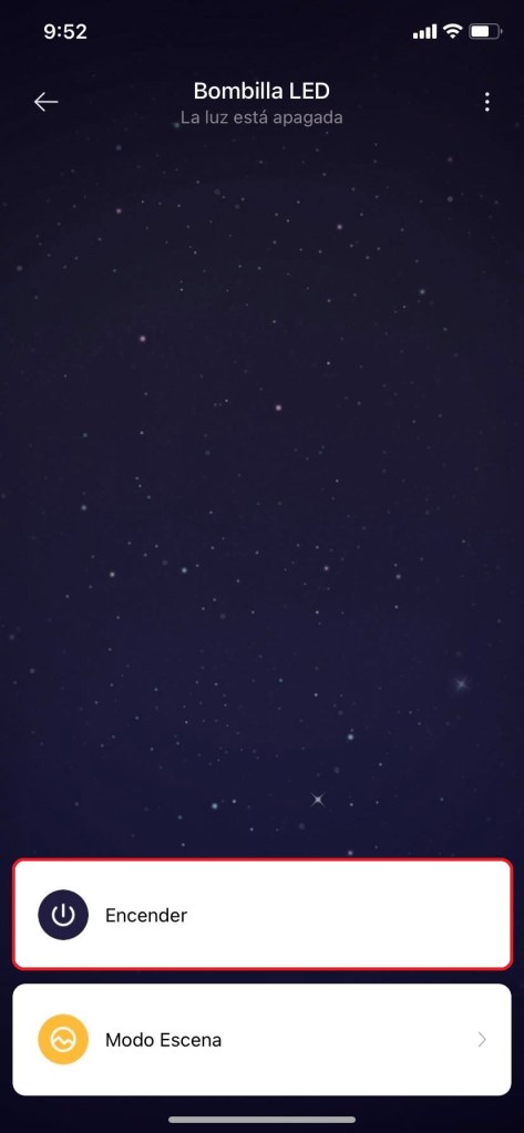 Ya configurada nuestra bombilla nos aparecerá en el menú de inicio. En el cual podremos apagarla y encenderla dando un solo clic.