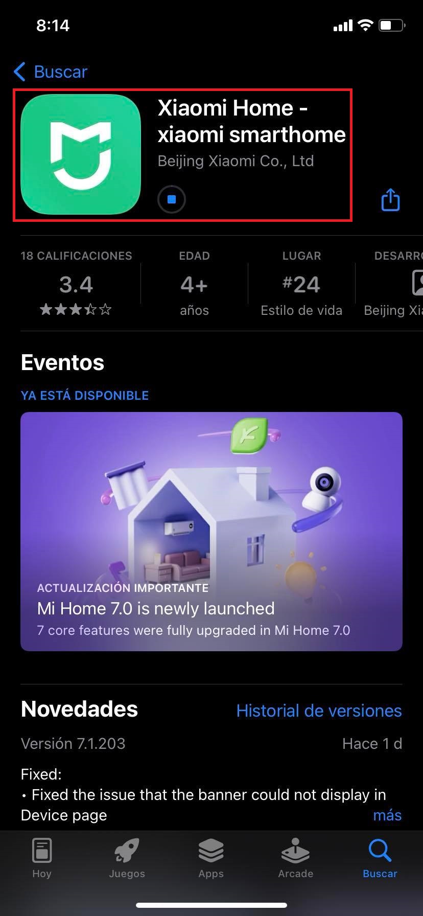 En nuestro dispositivo móvil abrimos la tienda de aplicaciones Google Play o App Store y descargamos la aplicación «Xiaomi Home«.