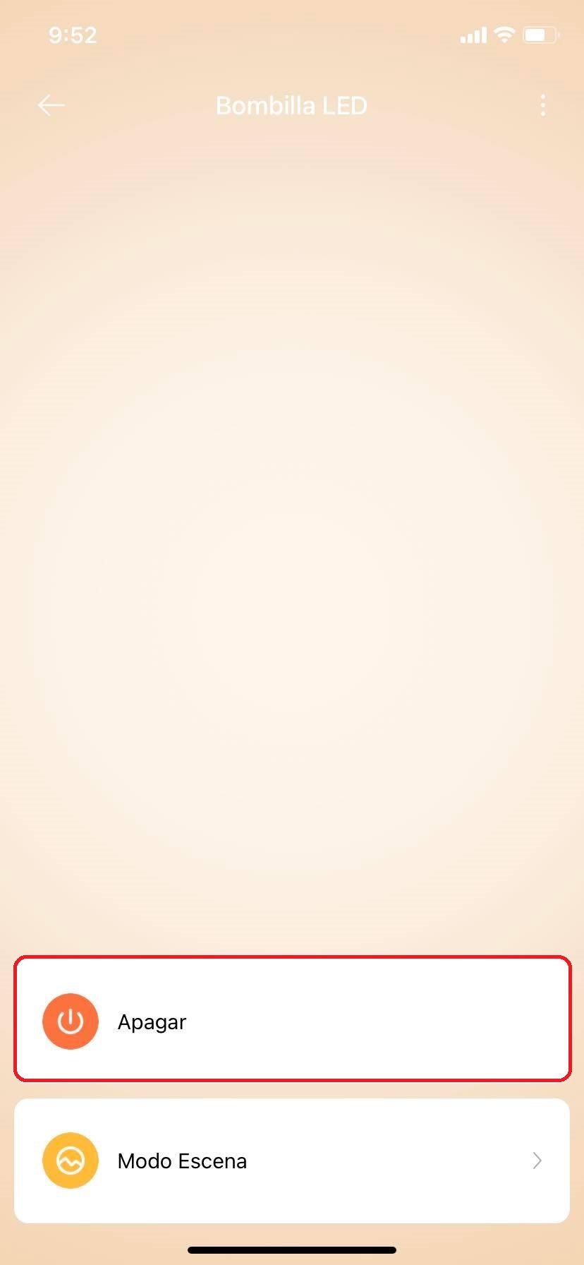 Ya configurada nuestra bombilla nos aparecerá en el menú de inicio. En el cual podremos apagarla y encenderla dando un solo clic.