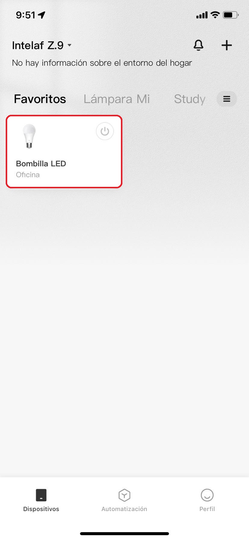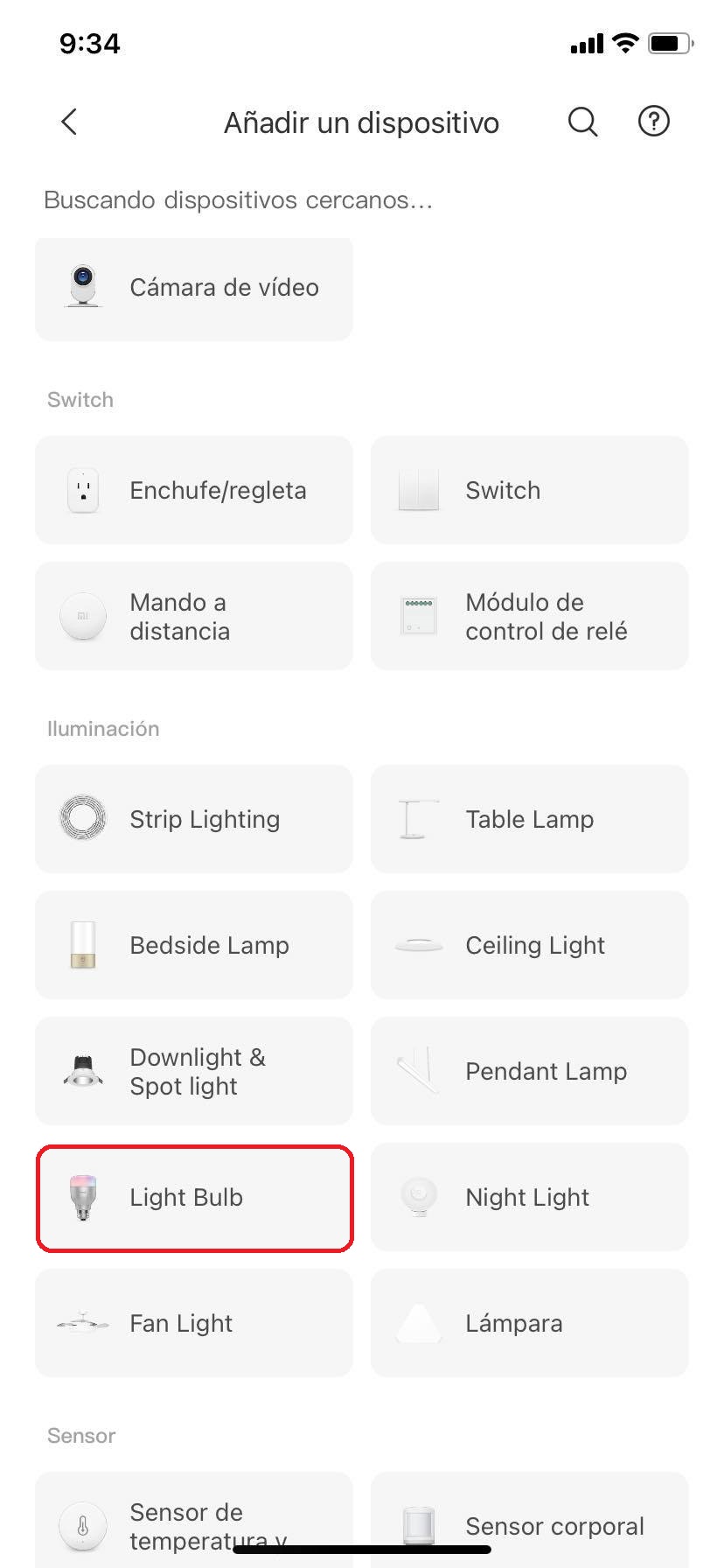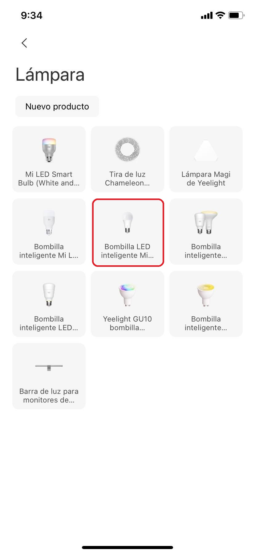 En el apartado de iluminación damos clic en «Light Bulb» para así nos despliegue todas las lámparas disponibles, seleccionamos «Bombilla Led Inteligente Mi Smart Led cool«.